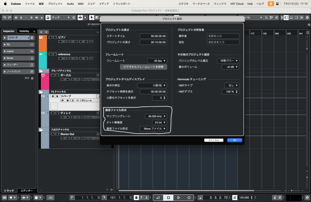 だいたいプロの音楽制作の現場では48kHz、24bitでファイルのやり取りをすることが多いです。