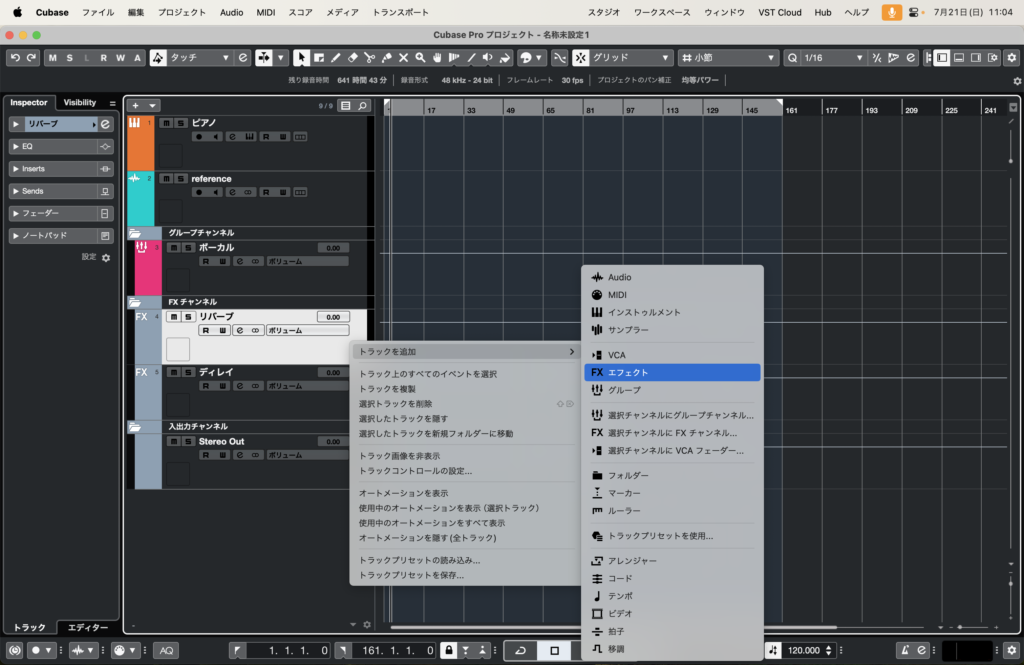 グループトラック、FXトラックも追加しましょう