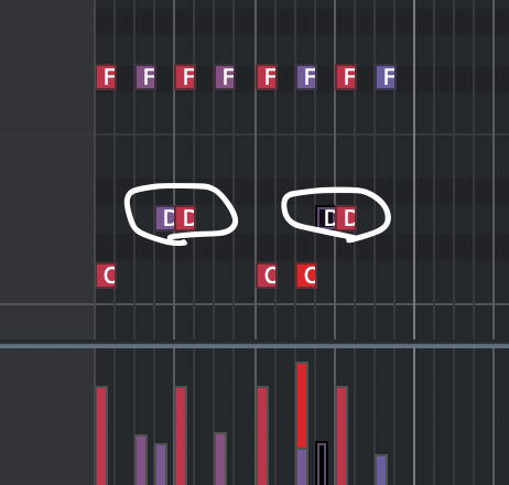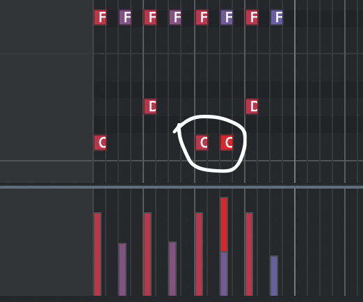 打ち込みの場合でも2回目のキックを強くすることで生の演奏に近づけることができます。意識してみてください。