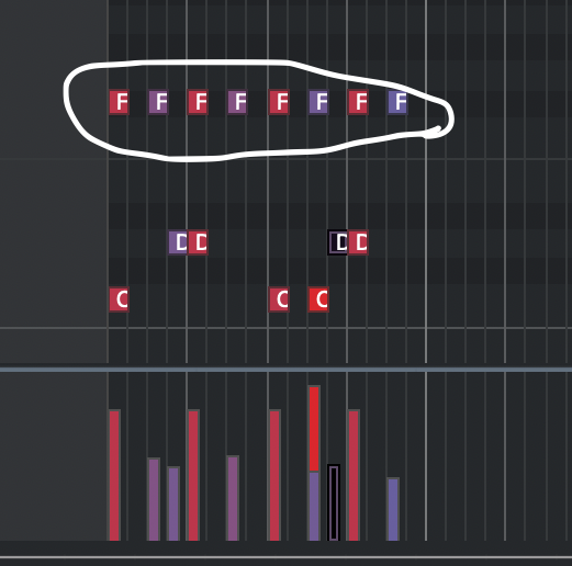 逆に表拍を弱く、裏拍を強くすることも可能です。自分に合ったよいと思う打ち込みにしましょう。