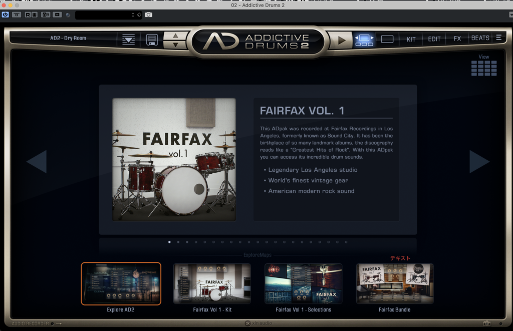 有料の音源としてよく紹介されるものとしてはKOMPLETEシリーズ、Addictive DrumやBFD、SUPERIOR DRUMMERなどが有名です。