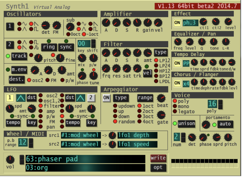 Synth1は無料のシンセ音源で定番のシンセです。