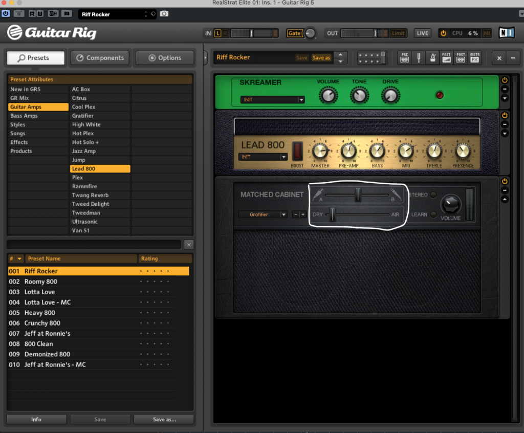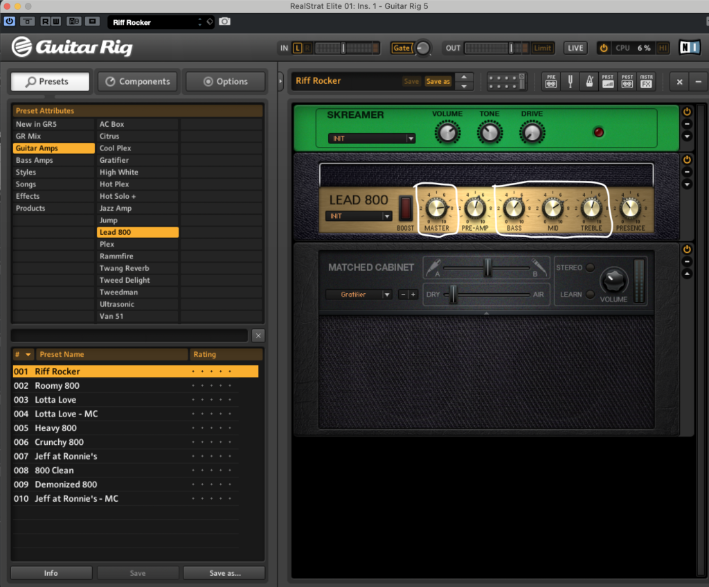 Guitar Amps→Lead 800→Riff Rockerの順で出すことができます。
