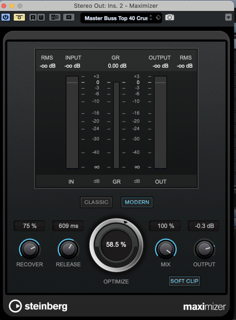画像はCubaseに内蔵されているマキシマイザーです。