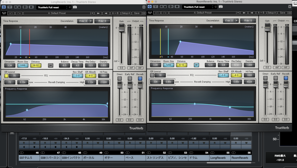 リバーブは、それぞれのトラックの演奏を同じ空間で演奏しているように一体感を持たせてくれます。
