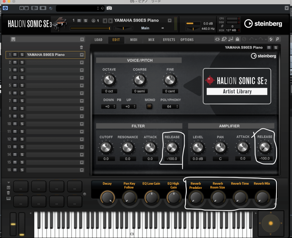 リリースカットピアノの作り方をCubaseで説明します。