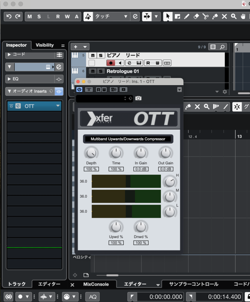 OTTを挿入するだけで良いです。上級者はOTTの設定をいじっても良いですが、設定を変更しなくても挿入するだけでリリースカットピアノに必要なコンプがしっかりかかります。