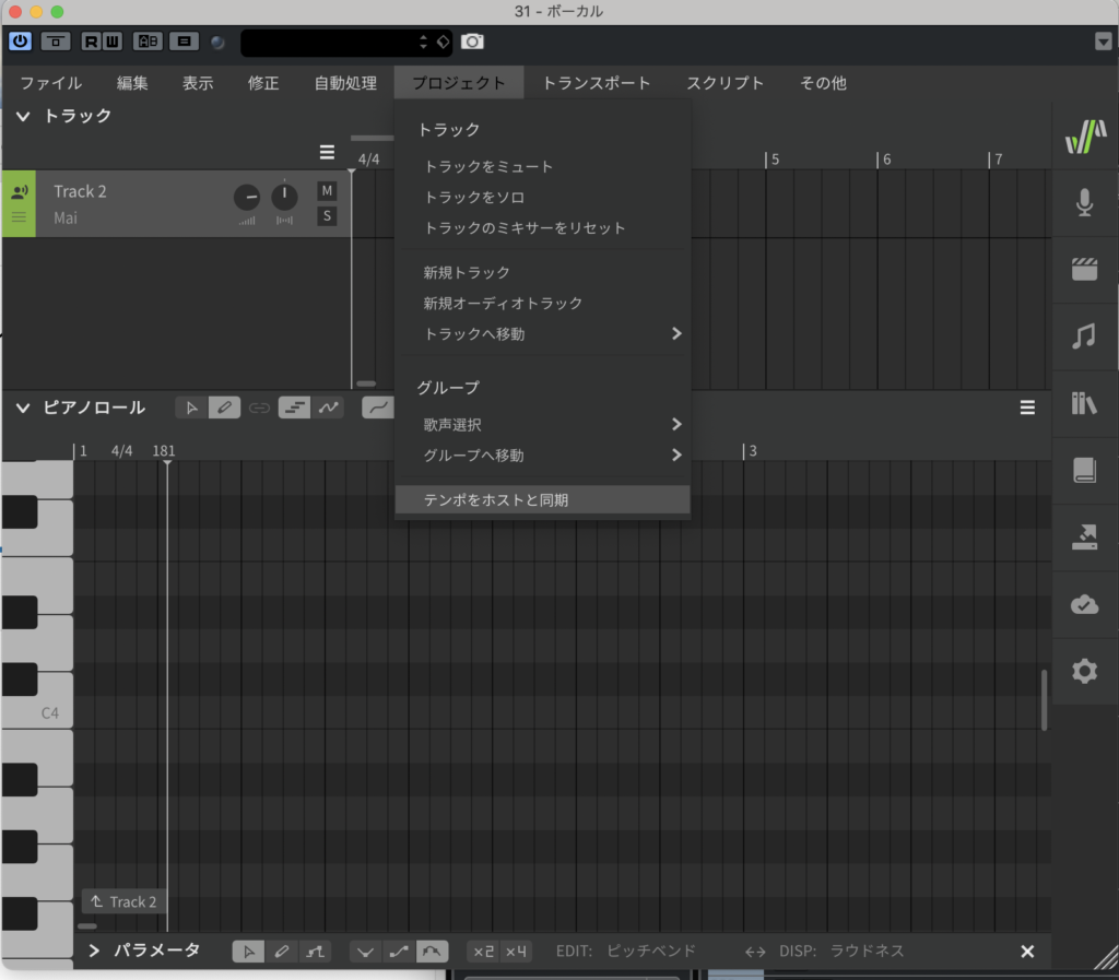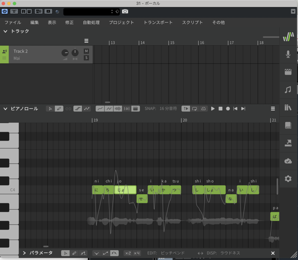 ピッチモードを選択し、簡単により細かく調声を行うことが可能です。